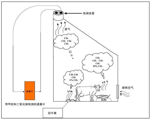 測量奶牛擠奶之前中和后的溫室氣體排放