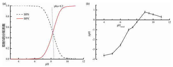 圖3:(a)雙酚S的分配系數(shù),(b)零電荷點(pHpzc)的確定。