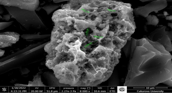 活性炭有著耐用且良好的粘合結構,在獲得的SEM圖像中,活性炭具有孔徑在250nm之間的中孔和超過50nm的大孔結構(圖1)。