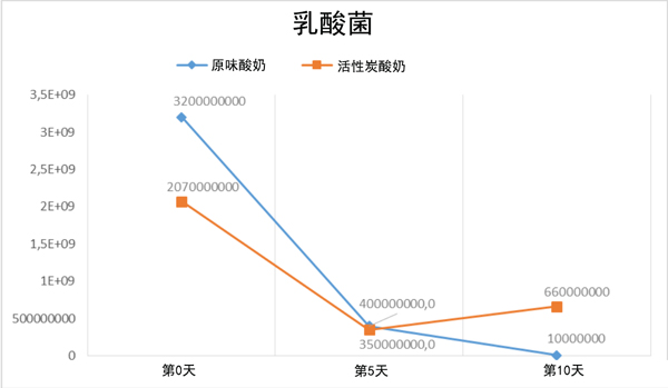 經測定,在含有活性炭的酸奶和原味酸奶樣品的第0天、第5天和第10天,沒有菌群和總酵母霉菌(PDA)生長。測定了總乳酸菌(圖3)。