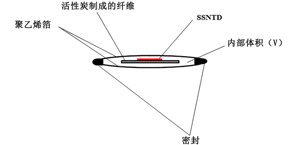 帶溫度補償?shù)幕钚蕴刻綔y器模塊設(shè)計如圖1所示。內(nèi)部傳感器使用活性炭吸附器和固體核徑跡探測器(SSNTD)。在本實驗中,使用了三種活性炭制成的纖維;钚蕴坑米麟笔占/散熱器,而SSNTD則檢測輻射量。補償模塊的壁由低密度聚乙烯或高密度聚乙烯箔制成。根據(jù)造型選擇箔的厚度和表面積,以達(dá)到合適的溫度補償。。當(dāng)探測器在探測器模塊外時,校準(zhǔn)系數(shù)為CF0。然而,當(dāng)探測器放置在其校準(zhǔn)因子內(nèi)時,平衡時將為CF =CF0.ρ,其中ρ是“穿透率”,即模塊體積內(nèi)空氣中的平衡時氡濃度與濃度的比值在它周圍的空氣中。CF0與吸附容量k成正比并且遵循與k相同的溫度趨勢,而CF與kρ成正比。正如在其他地方所指出的,穿透體積中壁的部分ρ隨著溫度的升高而增加,因此溫度的趨勢與k的趨勢相反。選擇氣體擴散通過的壁材、厚度、壁表面積和“補償模塊”的體積,以使kρ的溫度變化在應(yīng)用的溫度區(qū)間內(nèi)盡可能小。