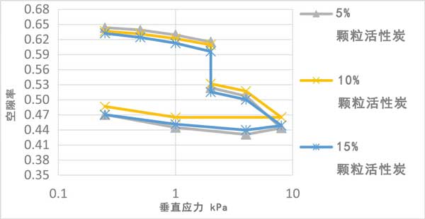 圖2:用(5、10、15%)粒狀活性炭處理的土壤的塌陷測試結(jié)果。