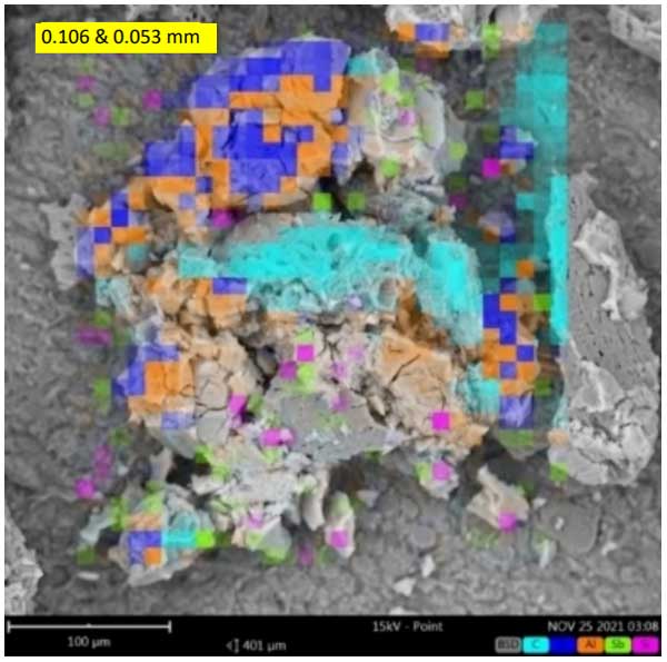 活性炭電凝工藝回收金,使用鐵和鋁電極的電凝工藝在水介質(zhì)中以0.8000±0.001g/L的濃度凝結(jié)了活性炭顆粒,盡管使用鋁電極的電凝工藝在細顆粒的回收方面表現(xiàn)出更好的性能。顯微SEM圖像顯示了活性炭顆粒上的鐵或鋁沉積物。還觀察到兩個或多個顆粒結(jié)合成單一化合物。電凝處理后的粒度總體上大于處理前。映射函數(shù)驗證了金在整個活性炭顆粒中以低濃度均勻沉積,除了在金濃度增加的某些地方。這些地方通常對應于活性炭中的地表下空腔或孔隙。電凝工藝在水性介質(zhì)中的最佳操作條件下活性炭對金的回收率為96-100%。