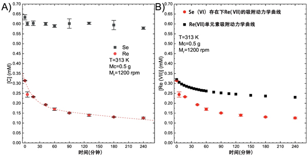 圖1:硒和錸吸附的動(dòng)力學(xué)曲線。