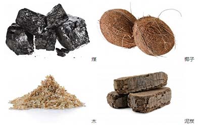 最常用的原料是煤(無煙煤,煙煤,亞煙煤和褐煤),椰殼,木材(軟和硬)和泥炭。許多其他原材料已被評(píng)估,如堅(jiān)果殼,橄欖石和棕櫚仁,但它們的商業(yè)限制總是在于原料供應(yīng)。
