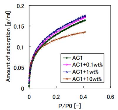 活性炭在0.4的相對壓力下。 當(dāng)它是1wt%時(shí),正丁烷的吸附量增加了最多是原料碳的1.11倍。 當(dāng)它為10wt%時(shí),正丁烷的吸附量減少比原始碳高出7%。根據(jù)上述結(jié)果,當(dāng)硅酸鈉溶液的條件是0.1和1wt%分別可以說,正丁烷對二氧化硅浸漬碳的吸附性能較大比法碳。