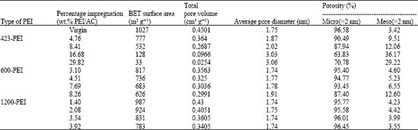 所使用的活性炭是通過以蒸汽作為活化劑的物理活化過程生產(chǎn)。我們以前進行了PEI浸漬和活性炭樣品的物理表征。和使用Phillips XL 30電子顯微鏡分析活性炭的表面形態(tài)。