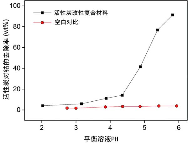 圖3:pH對(duì)活性炭吸附鈷的影響。