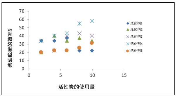 圖1:不同活化劑活化的活性炭對柴油脫硫。