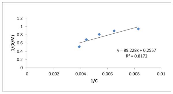 圖2:Langmuir等溫線柴油通過活性炭去除硫。