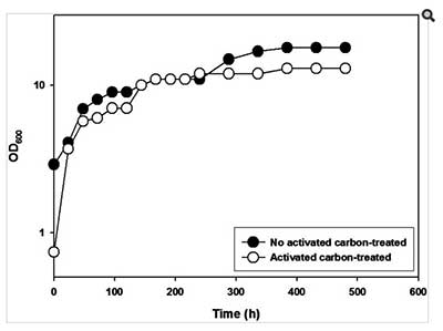據(jù)報道,酸水解產(chǎn)物中的呋喃衍生物(糠醛和5-羥甲基糠醛)和酚類化合物是有毒的并且可以抑制生物乙醇生產(chǎn),在酸水解產(chǎn)物中發(fā)現(xiàn)約0.6-3.0g / l的水平。以前的報告回顧了酸性水解產(chǎn)物的治理。活性炭處理導致呋喃衍生物減少92%,5-羥甲基糠醛減少68%,酚類化合物總量減少約1.25-0.5克/ 升。通過活性炭處理從水解產(chǎn)物中去除有毒物質(zhì)是非常可靠的。