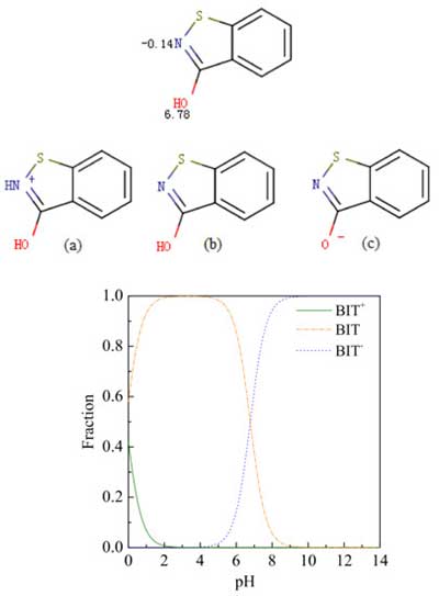 圖2顯示了根據(jù)它的pKa在不同pH條件下BIT的狀態(tài)。BIT的狀態(tài)是(b)在pH2-6,這是非離子和疏水的,導致高吸附。當pH為7-12時,BIT保持負電荷,這意味著它與水具有緊密的親和性并且被活性炭吸附不良。當pH<4時,OIT已經(jīng)收取官能團,這影響了吸附。在pH>pH pzc時,帶負電的氧官能團也阻礙OIT在活性炭上的吸附。官能團也影響活性炭的吸附。