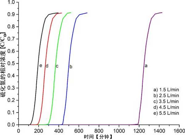 通過(guò)使用經(jīng)受不同操作參數(shù)的混合氣體測(cè)試活性炭性能,例如流速,所用長(zhǎng)度床,所用氣體類(lèi)型和活性炭。為了確定吸附容量,穿透點(diǎn)和飽和點(diǎn)分別表示硫化氫濃度何時(shí)在出口流處達(dá)到1ppm和1000ppm。此外,數(shù)據(jù)表示為重復(fù)三次的平均結(jié)果。