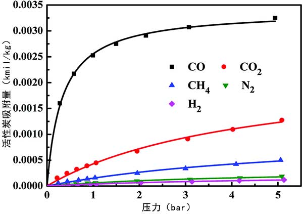 活性炭對(duì)CO,CO 2,CH 4,N 2和H 2的吸附等溫線
