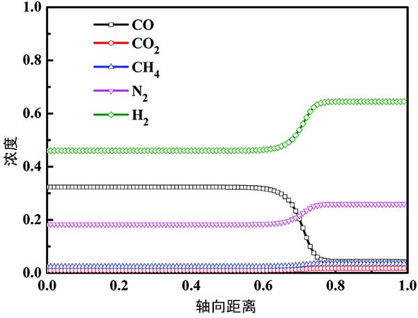 活性炭吸附步驟后CO,CO 2,CH 4,N 2和H 2的軸向濃度分布在圖4標(biāo)記?梢钥闯,活性炭吸附步驟后,Z/H=0.00-0.60的吸附床達(dá)到飽和,CO,CO 2,CH 4,N 2和H 2的濃度不隨軸向距離變化床的一部分,與進(jìn)料氣中各組分的濃度一致。并且在Z/H的不飽和吸附床中>0.60,隨著床軸距的增加,CO濃度逐漸降低,其他成分濃度逐漸增加。最后,所有組分的濃度趨于穩(wěn)定。