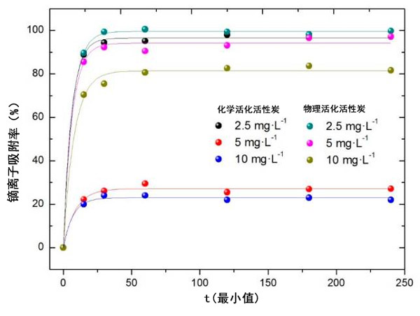 吸附實驗表明,溶液pH的變化對活性炭的吸附有很大影響,在pH為4時獲得較大的吸附。如預期的那樣,溶液鏑濃度的降低會增加吸附百分比。另外,在化學活性炭的情況下,鏑吸收量隨著吸附劑量的增加而逐漸增加。在物理活性炭的情況下,沒有觀察到這種效果,其中除了使用的最低量外,吸附百分比實際上保持恒定。最后,溫度的變化稍微改善了吸附過程。盡管如此,物理活性炭在所有情況下都表現(xiàn)出很強的吸附能力。