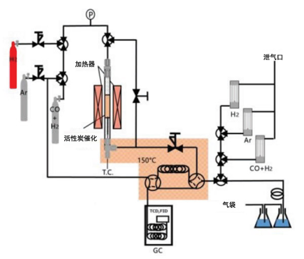甲醇合成后,將活性炭催化劑插入連續(xù)的管狀固定床反應(yīng)器中(圖1.)。在將工作條件調(diào)節(jié)至壓力14-20 bar和溫度220°C的條件下測試穩(wěn)定性。在管式反應(yīng)器中總共填充1-2克活性炭。在反應(yīng)步驟之前,在操作溫度下用H 2流還原催化劑。使用機器生成的甲醇分析氣體為了防止催化劑液化,活性炭催化劑層后的管道保持在150°C。