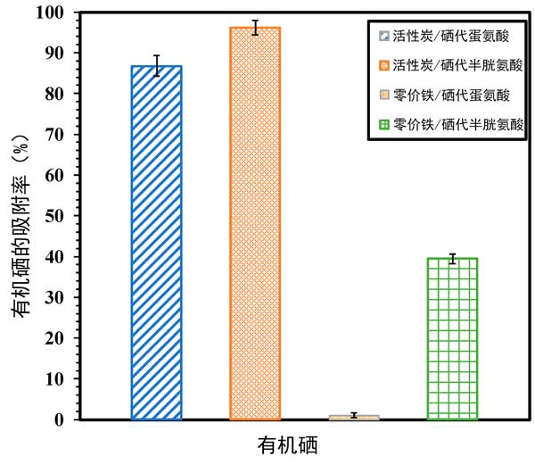 圖2:在25°C下使用7g/L的活性炭和pH7.0的納米零價(jià)鐵去除有機(jī)硒3小時(shí)的比較。