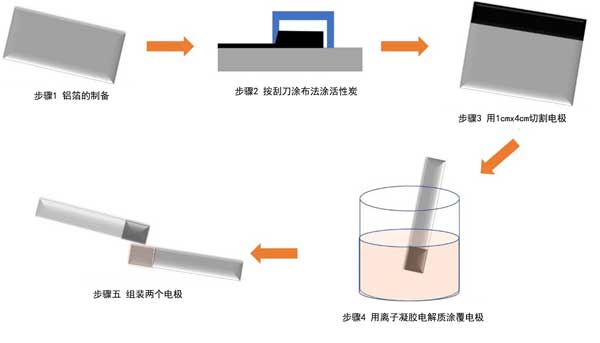 圖1:通過刮刀法制備基于活性炭的全固態(tài)超級電容器。